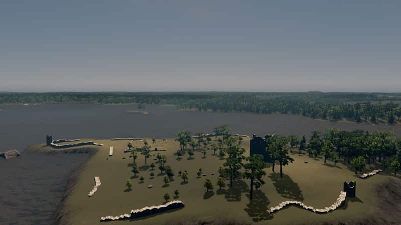 The terrain doesn’t have any mountains, but there are plenty of smaller hills and the landscape is far from flat. The river valley is the fertile heart of the area. On the outskirts there are numerous small islands in the sea, including one with the old fortress.