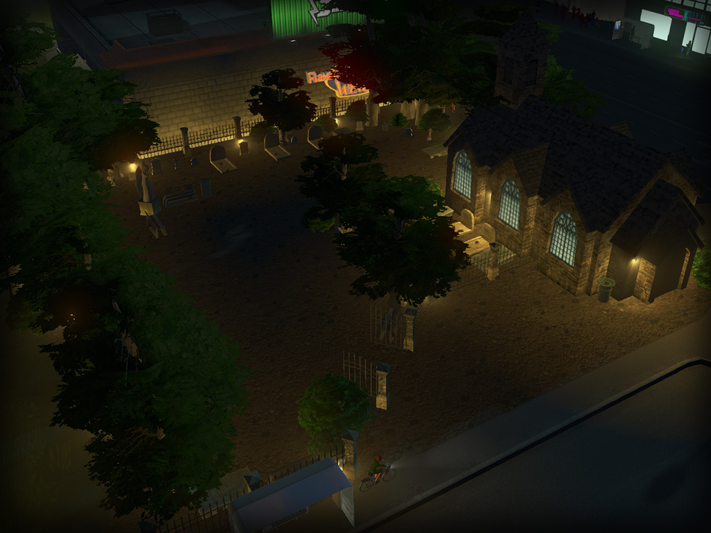 Small graveyard, fits on a 4×4 plot. Has a smaller capacity than the base cemetery, but it’s also cheaper.