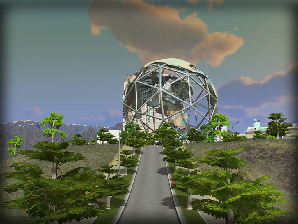 #TEMPTED, blue, green, metal, gloss, land, water, sea, globe, mesh, frame, attraction. tourist, summer, modding, contest, world, paradox, steel, unique, building, park, circular