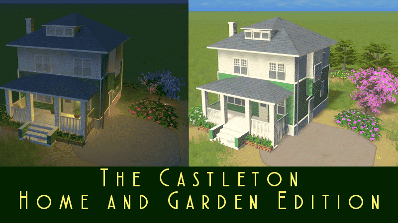 This is a collection of Kliekie’s five Sears Homes she kindly converted to levels 4 and 5 and allowed me to landscape. There is one of each of her homes for levels 4 and 5, so that as your city’s low density residential increases in level, you will see more and more of these homes. Mixing these in with other American style homes will give you even more variety and give it an authentically American look.