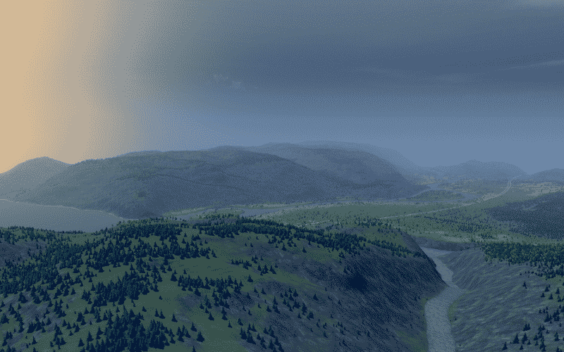 Klondike Creek is a mountain valley inspired by the areas surrounding northern gold rush settlements in the Yukon and coastal British Columbia. Fast flowing river rapids and plenty of ore if you can get to it first (and plenty of forestry too, naturally).