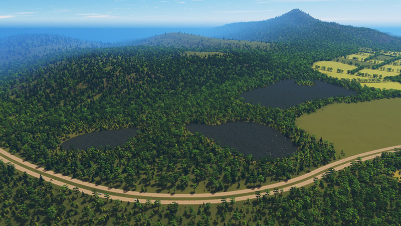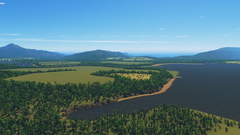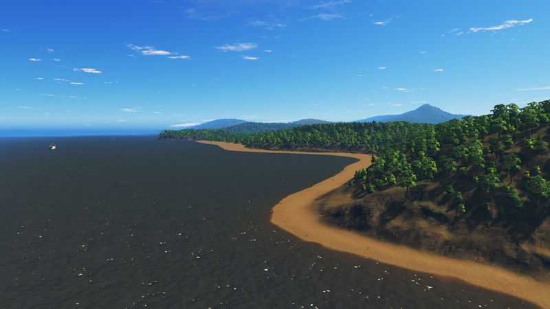 The main river has a sturdy water flow, suitable for sewage. There are various lakes that have their own water source, so they can be used for pumps. There is one near the starting tile and a cluster of three across the river. There is also an inaccessable basin further inland. There are plenty wide beaches along the coast for your tourism. I’ve tried to have the water flow away from the beaches.