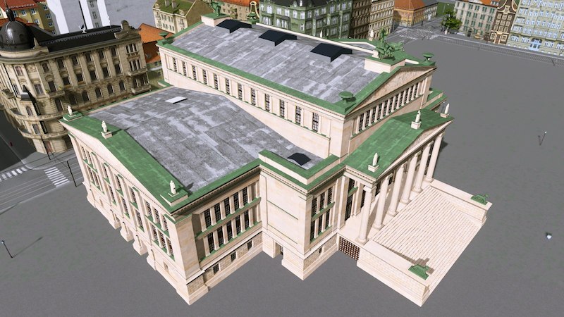 This is the Konzerthaus [en.wikipedia.org] (Concert Hall) on the Gendarmenmarkt in Berlin. Built from 1818 to 1821 as a theatre by the famous architect Karl Friedrich Schinkel, it was severely damaged during World War 2 and rebuilt from 1977 to 1984 as a concert hall.