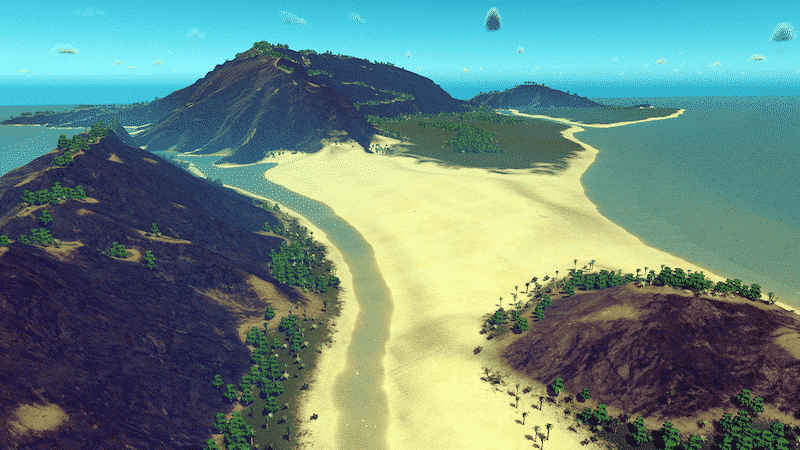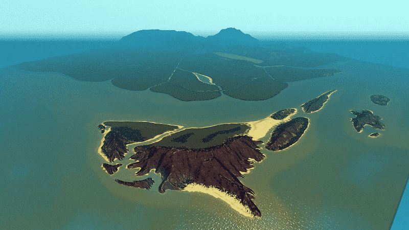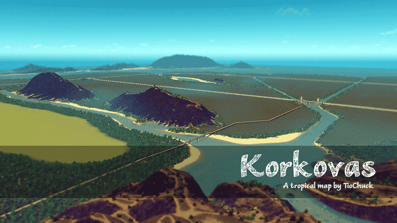 Korkovas is a tropical map with many paradise views. The terrain dedicated to the city is almost all plan, so you can build easily whatever you want to. The various islands gives a touristic feel to your city.