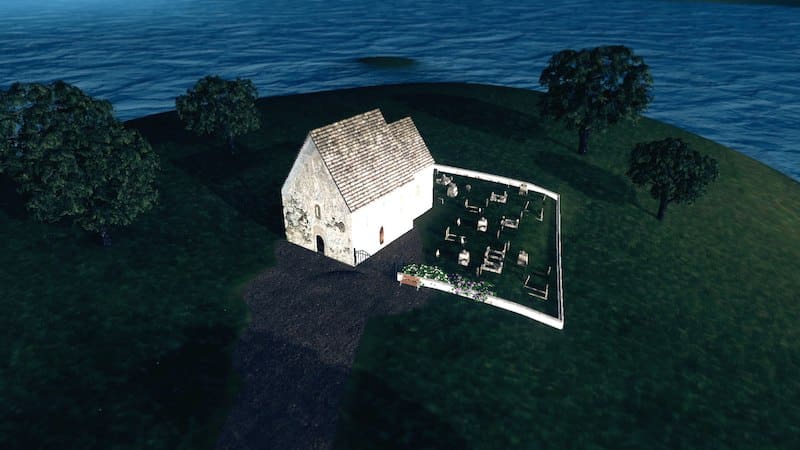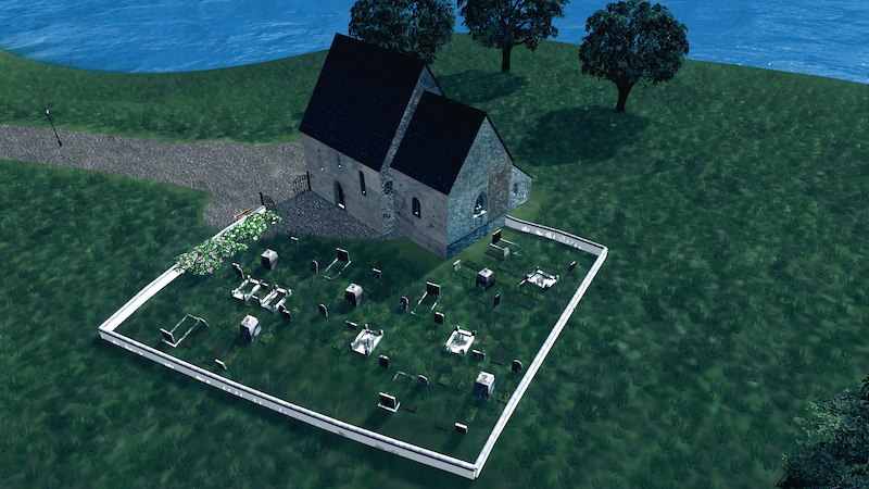 – The asset comes as illustrated in the second screeshot. The cemetary on the other screenshots is just detailing.