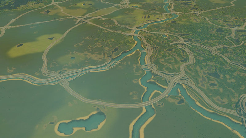 It contains nearly all major freeways, highways and expressways within the map range, criss crossing one another. They were all rendered with Google Maps accuracy to the best of my ability. To name some, they are: