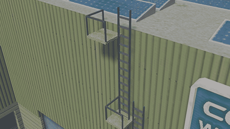 A ladder with a platform! This is an extract from the game with a few modifications and custom texture. Nothing super fancy, but I’m sure it will come in handy. You can find it in the “Rooftop access” prop category (I figured that made the most sense). It’s somewhere around 5m long and a pretty light weight prop.