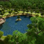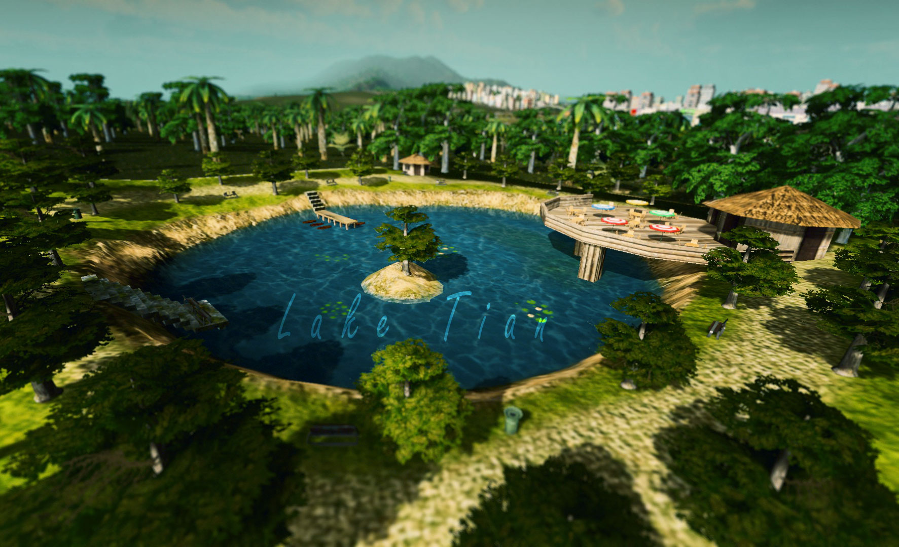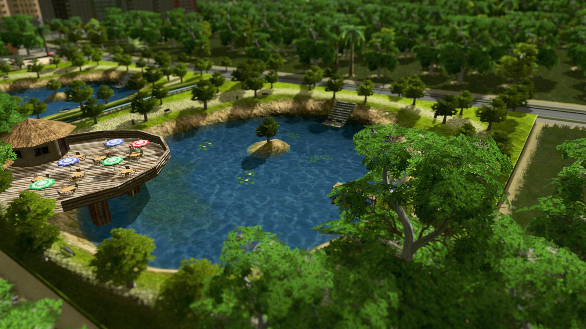 There you will find trees,benches, a nice wooden terrace with a restaurant.