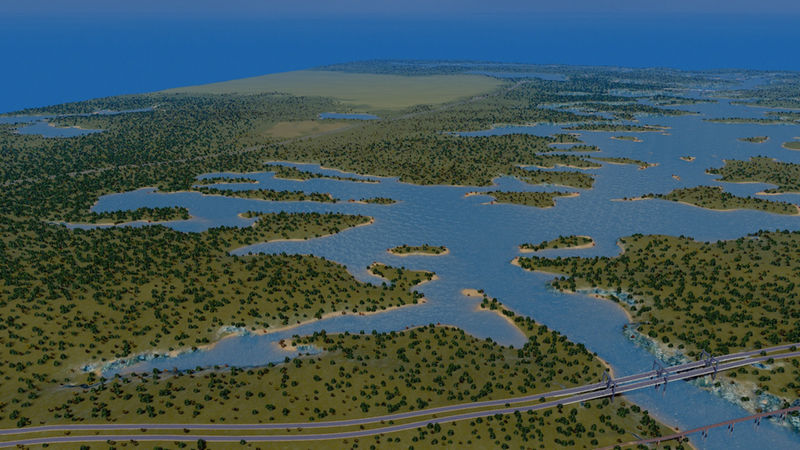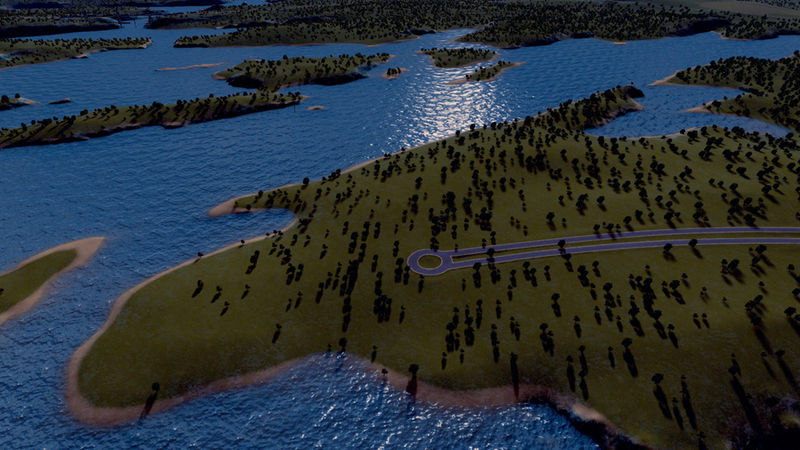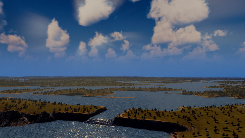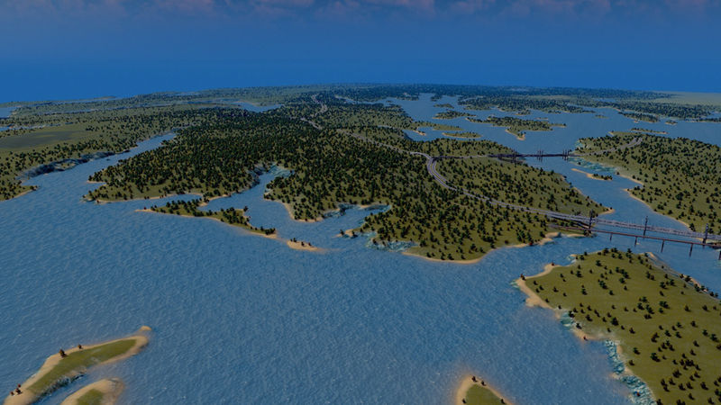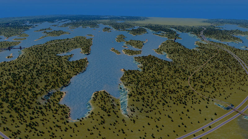 The map is fictional but uses heightmaps from a lake in Sweden called Sommen. Its area is 132 km² and its greatest depth is 60m. The lake is located in southern Sweden, and is bounded by the provinces of Östergötland and Småland.