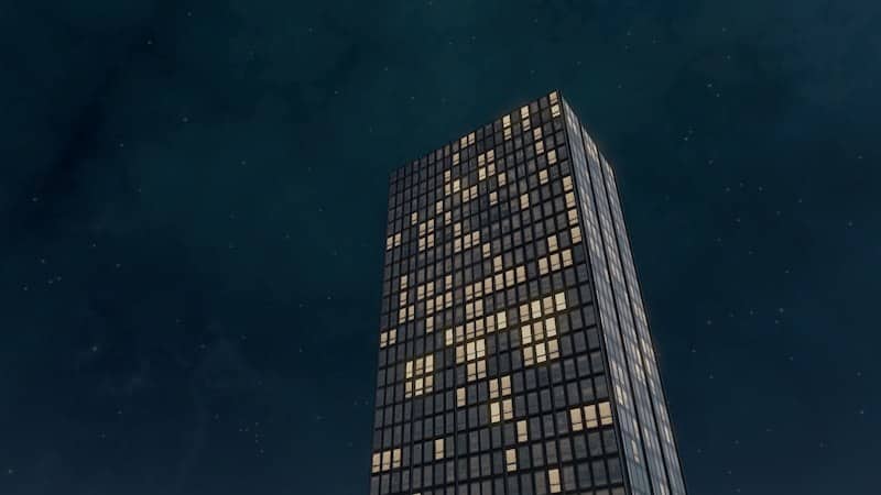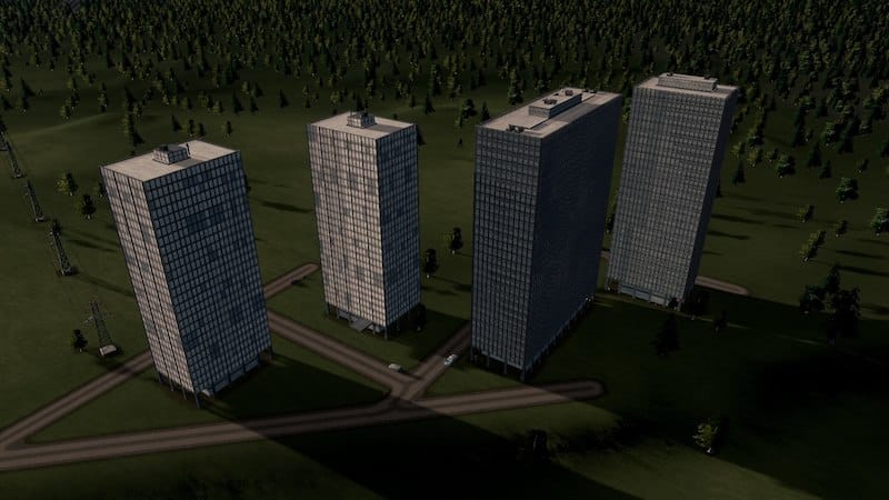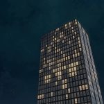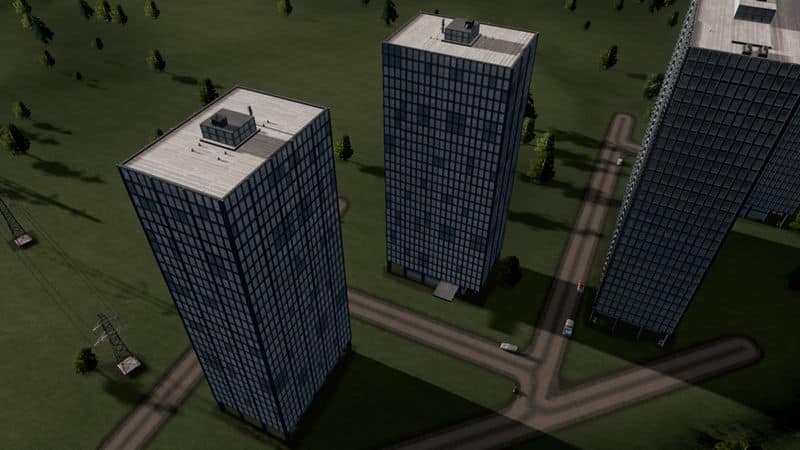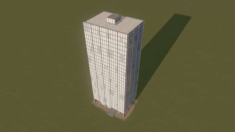 This glass-and-steel high rise is based on the twin condo buildings on Chicago’s downtown lakefront. 860 & 880 Lake Shore Drive were completed in 1951 and have since been designated as landmarks to the city. They offer cozy living in the ritzy neighborhood of Streeterville, paired with scenic views of Lake Michigan and Navy Pier.