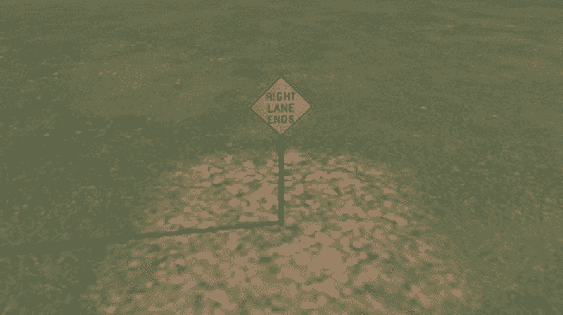 The right lane will soon end, so expect merging traffic. This sign uses text instead of a symbol.
