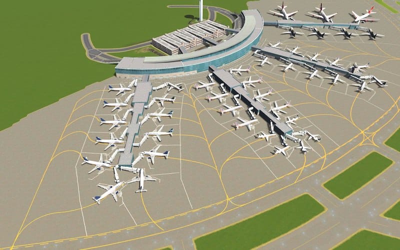 This is a collection of buildings for a large airport terminal. It should be noted that these are not functional, and are listed as transportation buildings, so they do not generate tourism.