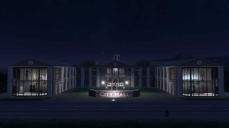 Your city government has grown so much it needs to upgrade its city hall! Building onto the last city hall, the second floor was expanded and a small third floor was built. The council chambers was relocated to a new larger room and underground parking was built. The built in police precinct grew a bit. Next time city hall will need to be upgraded a new City Hall Annex will be needed.