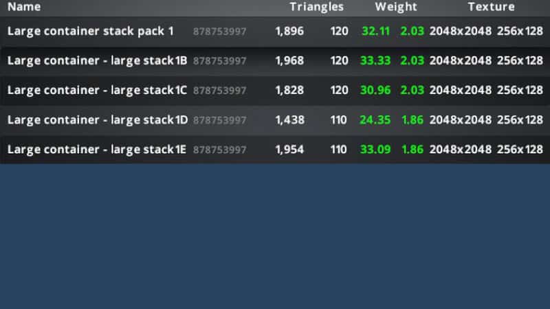 This asset takes advantage of the random prop feature added to the asset editor in patch 1.6 and will cycle through the 5 variations. With mods such as Prop Line Tool you can drag lines of containers and automatically get variation.