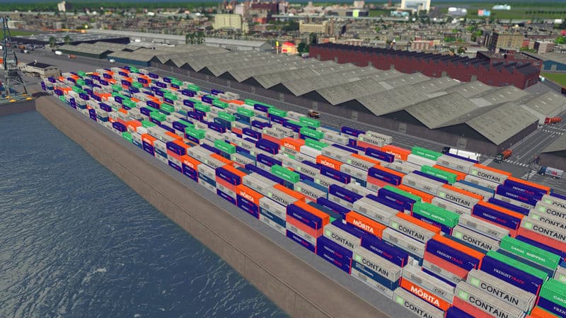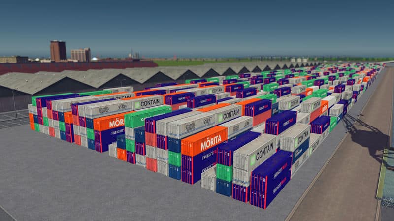 This asset takes advantage of the random prop feature added to the asset editor in patch 1.6 and will cycle through the 5 variations. With mods such as Prop Line Tool you can drag lines of containers and automatically get variation.