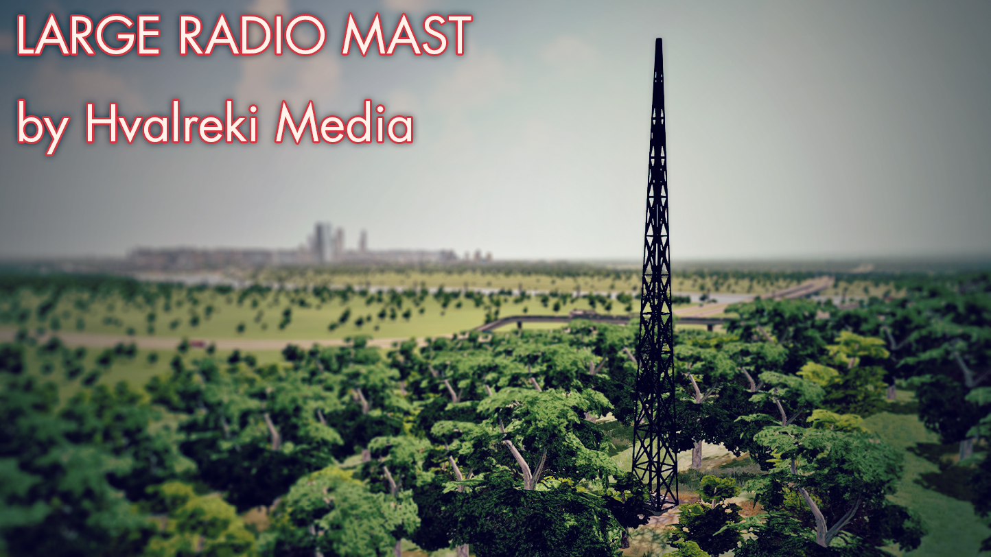 Thanks to popular demand, I have created a standalone radio mast for decorative purposes in your city. The radio mast is 20 meters tall, which is about half as tall as most high density skyscrapers in the game. This asset has the added bonus of relaying power a small radius, which is why it can be found in the “power plant” category. Please note that this asset is not supposed to produce power, so do not be alarmed when the GUI tells you that it is producing 0mW.