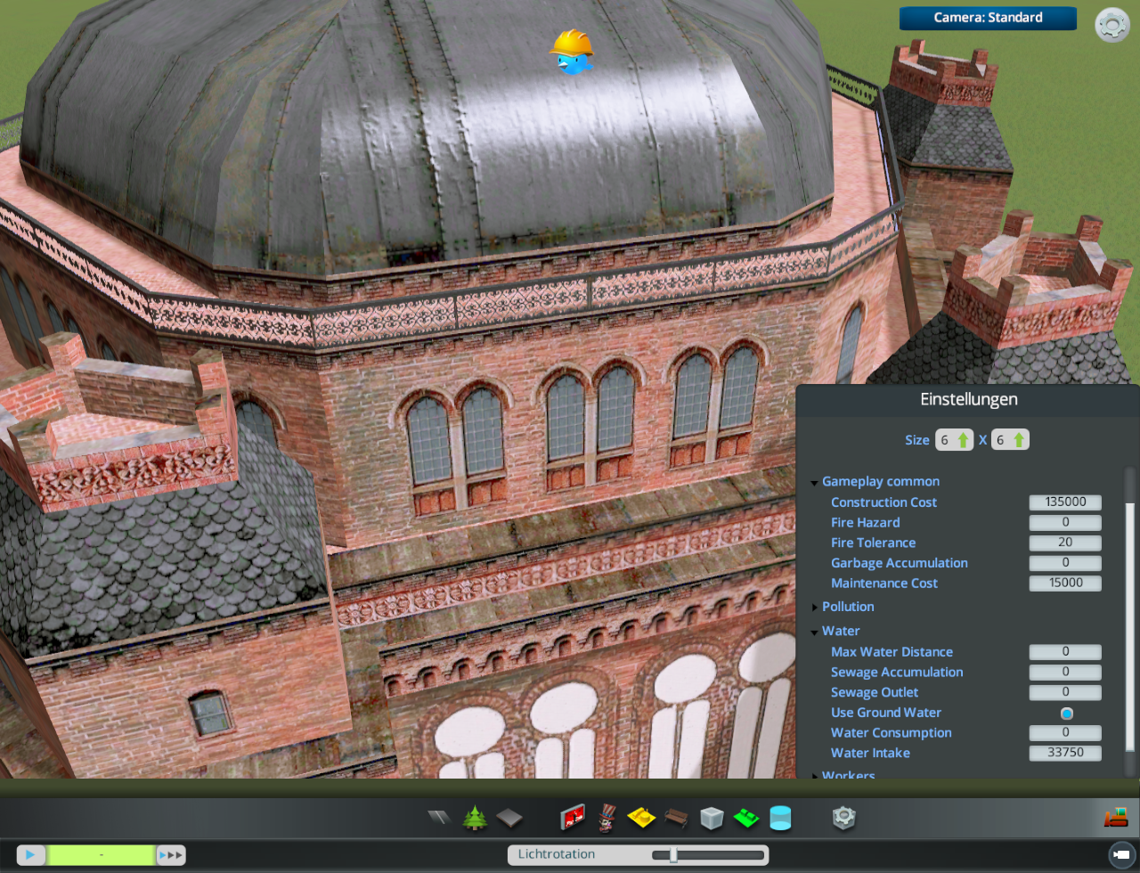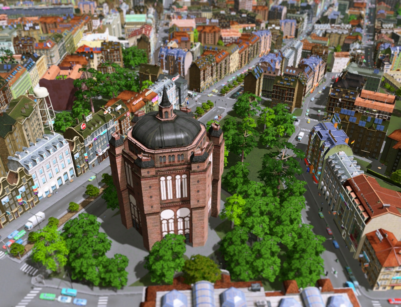 I got definitely inspired by the contest to build a large volume water tower. It is about 60 m high, takes up 6×6 squares and has 10 x capacity of the default one providing 540000 m³/w at a cost of 2400 money/w . This one is fictional, though inspired by many old water towers around central Europe. It is not quite a monument plus I’m not sure if it really has the largest tank of all water towers (maybe if it was built in the past) so I completely leave it up to you and the jury to decide whether or not it could still be a participant of the contest – I wouldn’t mind either of it! ?