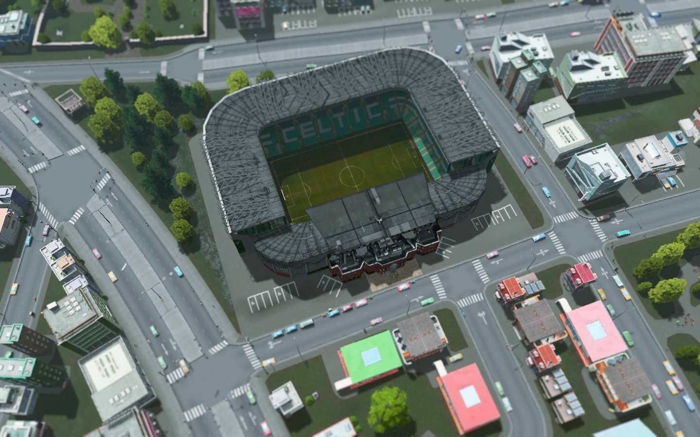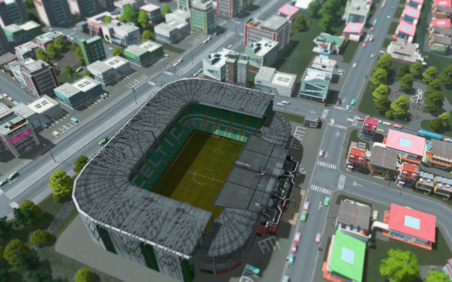 Hereyou got a bigger one. I dont have much time, tomorrow I will write some more. But in advance… it was a good friends request. I try to watch Celtic games when I am not at a game myself and my girl doesnt get to annoid ? Just wanna say, deer Celtic Fans: I am sorry for any supermad faults. Ive never been live to a game in paradise (yet). Also I am sorry that the flags on the roof arent there (yet as well… hoping for animated flags) and that the statues in front of it arent there as well. Place and polygons.