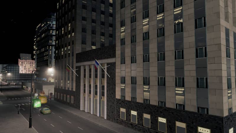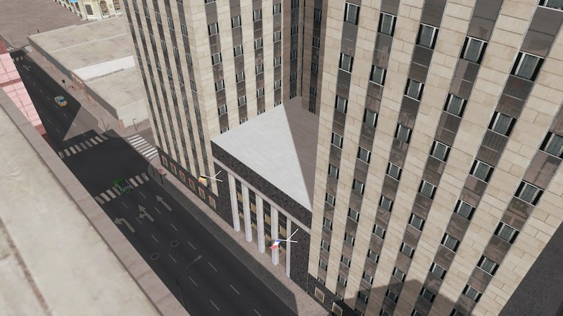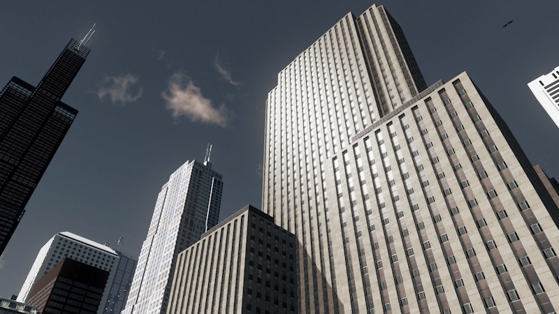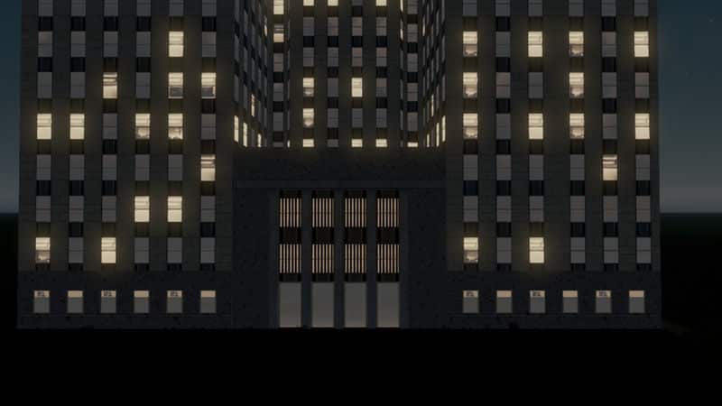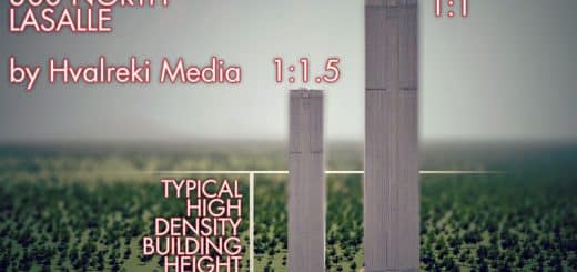 Today it is host to Bank of America, AmTrust, and some other vampiric things. I’ve included at the base some self-illuminating bank logos, as well as a set of Chicago flag emblems in case this venerable old skyscraper gets homesick in whatever new town he ends up in.