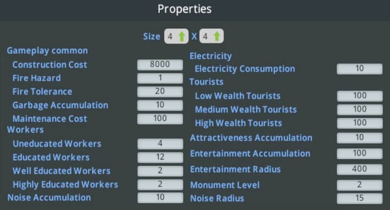 I recommend you use the Not So Unique Building mod to place more than one of these in your cities. I recommend using the Building Panel Already Exists Icons Fix for clearer visibility of the thumbnails of these assets in your Unique Building tab. Lastly of course, should you choose to use RICO you will undoubtedly need the Ploppable RICO mod.