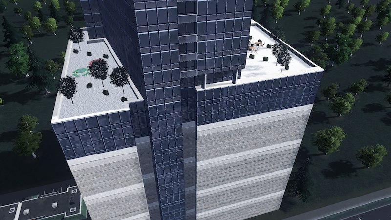 Note for the purists – in real life, this building went up *on top* of older landmarks, and therefore I improvized the parking structure at its first few levels. If you’re going for the spitting image of Chicago, I encourage you to use Move It to plop some old looking things around it.
