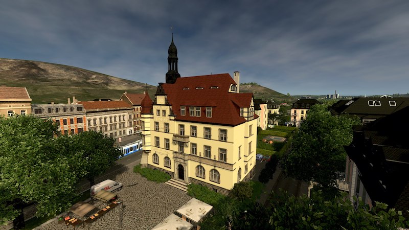 It is a small townhall built in 1900/1901 to serve the incresing number of citizens in the former independent village. Fell free to use it for small towns, villages, suburban areas or other purposes. Ingame it is a level 2 unique building.