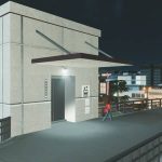 先に引いてある歩道橋に後から付けることもできますが、支柱の位置によりうまくいかない時は一度歩道橋を削除してからアセットを置き、歩道橋を引き直して下さい。