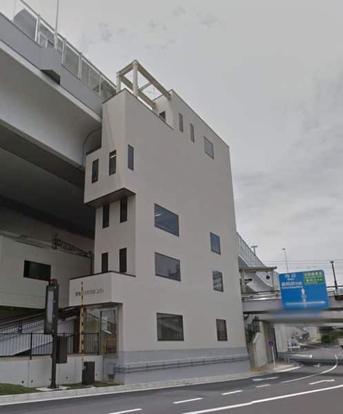 西天王山駅にあるネタ元のエレベーターはもっと細いのですが、歩行者パスがどうしても建物からはみ出して入り口に向かわずズレた場所で消えるのでそれを隠す為に大きめのサイズになりました。