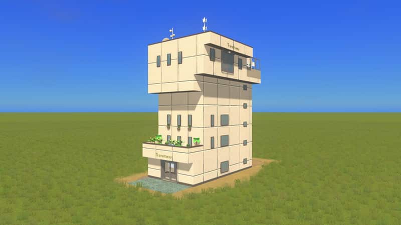 西天王山駅にあるネタ元のエレベーターはもっと細いのですが、歩行者パスがどうしても建物からはみ出して入り口に向かわずズレた場所で消えるのでそれを隠す為に大きめのサイズになりました。