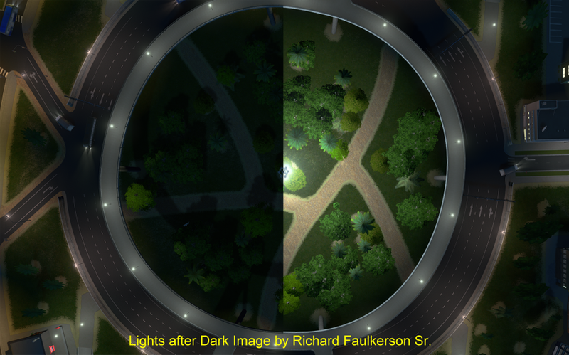 This Asset adds an area of light to the otherwise dark new world of Cities and Skylines After Dark.