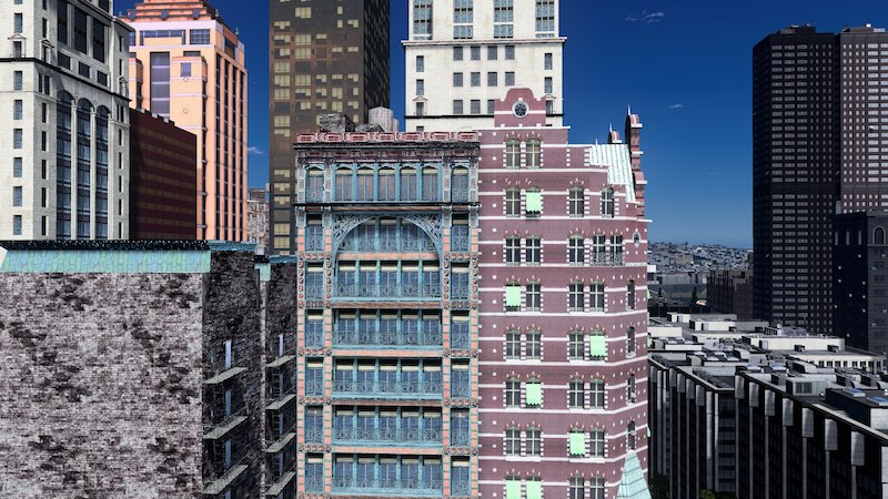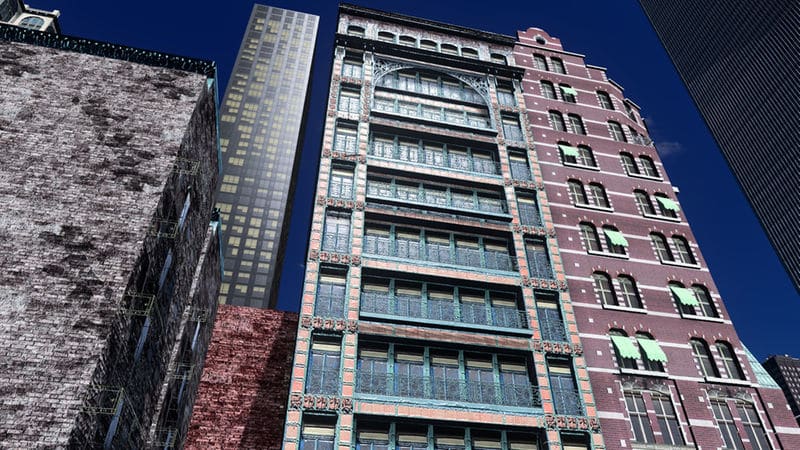 I decided to look for a different kind of wall2wall building than the typical Nouveaux Art buildings you will find in New York of this era. This one certainly catched my eye. However the copper plating on this building was hard to make right.
