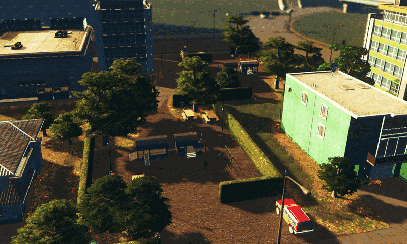 This cute little playground adds variety to your city’s playgrounds. The centrepiece is a “train” play house. Unfortunately it is just decoration, the cims don’t seem to understand what to to do with it…