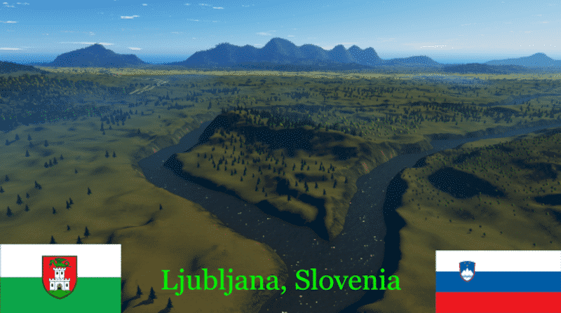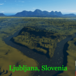 Ljubljana, the beautiful capital of Slovenia. Try to equal or exceed the architectual and aesthetic style of the famous Jože Plečnik in his hometown! I used a heightmap as a base, but the rivers are drawn by hand. Julian Alps in the background enlarged for effect. (It’s the Alps after all!) Contains at least some of all 4 resources for playablity, lacking only a container ship route. The oil is unrealistic but just for fun and there’s not much of it. Outside transit routes are well connected but left open in the city for maximum flexibility. Najlepša hvala!
