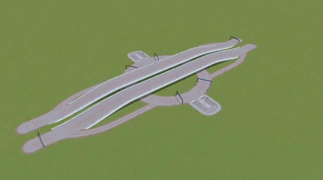 This is my version of the roundabout interchange which allows you to connect a motorway with a road.
