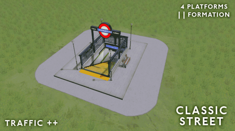London Underground station entrance, Classic Style as seen at Oxford Circus, Kensington, Bank etc – This asset requires the Traffic++ Mod, 4 Platforms, Bars formation || by mdtaUK