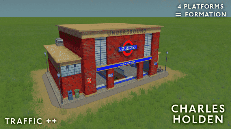 London Underground Station – Charles Holden Inspired (rectangular), 4 Platforms, Equals formation =