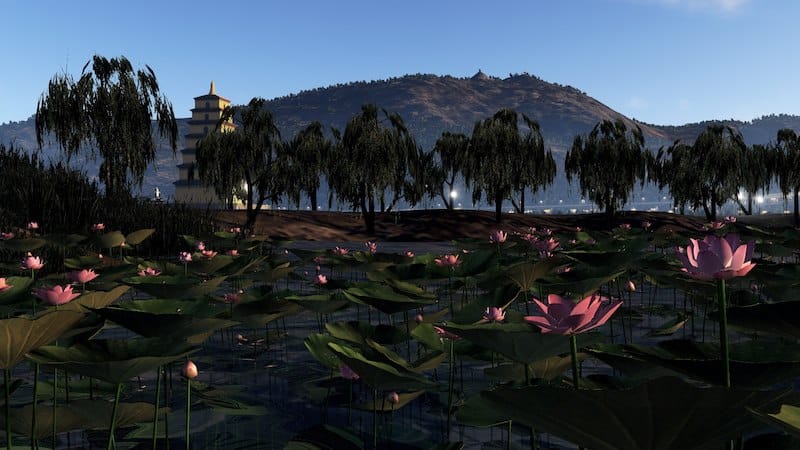 a cluster of lotus consists of leaves and flowers. Please use BloodyPenguin’s Prop & Tree Anarchy to plant it in water and Extra Landscaping Tools to adjust the water ground level after planting. Naturally you should plant it in shallow water. (You might notice that it can also be planted on land. I don’t know how to restrict the placement to be only in water for trees.) I also recommend using Boformer’s Random Tree Rotation .