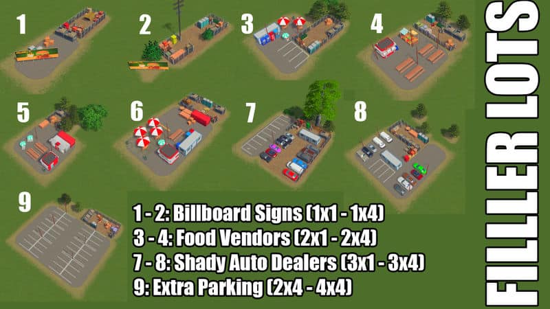 In real life, some buildings get to have breathing room. But for some silly reason, the cims don’t quite get that, yet they still complain about a lack of parking spaces or not being able to find the nearest hotdog stand. Luckily for you, I’ve addressed this problem with commercial filler lots!