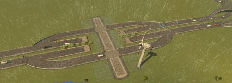 Instead of using a clover leaf intersection you can place one of these and then rotate another one 90 degrees and place it down over either highway end to create a 4-way-kinda intersection. It won’t be the same. It will better!