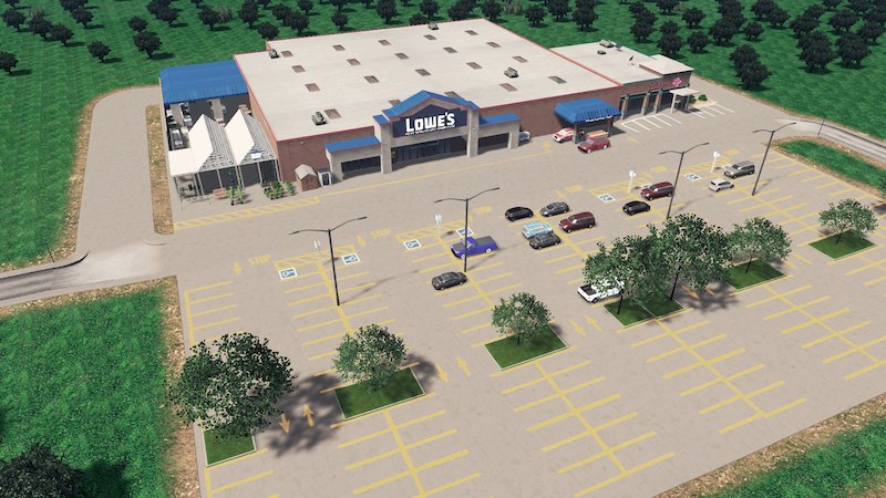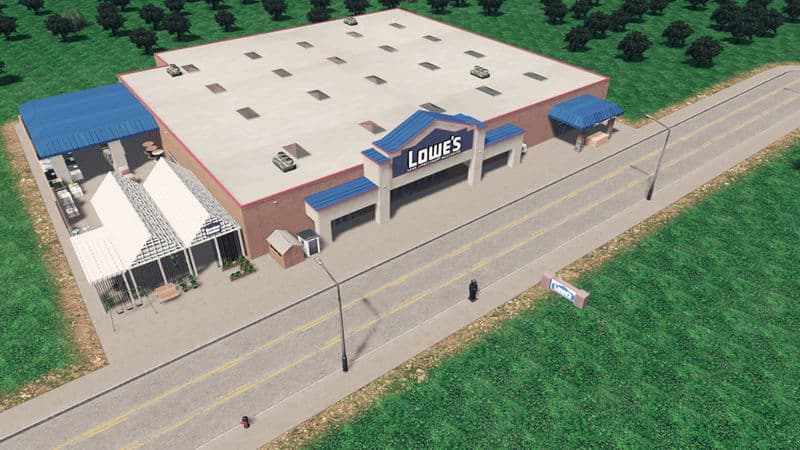 It’s a new year, you might want to get that dry wall patched or smoke detector replaced before another year passes. Lowe’s Home Improvement store will give you a hand! Lowe’s is headquartered in Mooresville, North Carolina and is the second largest hardware store chain. This asset has the garden center and pallet area where kids like to run around in. Just subscribe to the props and maybe you’d like to subscribe to the More Beautification mod to add more plants and such. I reached to prop limit in the editor. Also, while you’re at Lowe’s, maybe think about adding that additional wing to your house or building a deck for the backyard. This asset is a corner piece for the Riverpark Shopping Center.