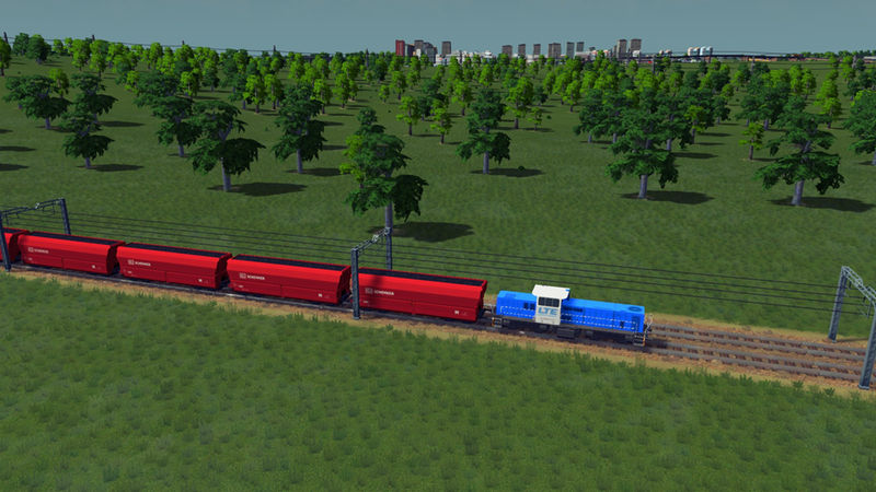 A more normal sized cargo train of 10 hoppers loaded with coal in a DB Schenker livery pulled by LTE 6406.