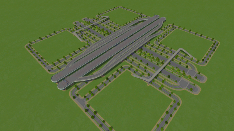 Main avenue under the highway. You can use the squares in the corners to place shops or parks. Enjoy.