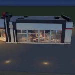 Retextured vanilla building to look like a higher-end dealership with dark grey accents and a Tesla vehicle inside (yes, I would have made it with the new glass modeling, but that’s far beyond my abilites. Still learning!)