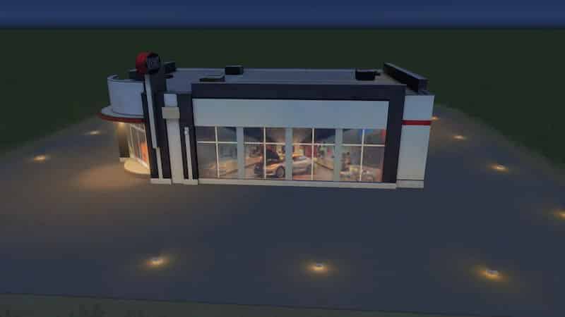 – There are no custom props nor trees required – the only sign on it is the “Skylines” oval sign that replaces the original sign “Joe’s”