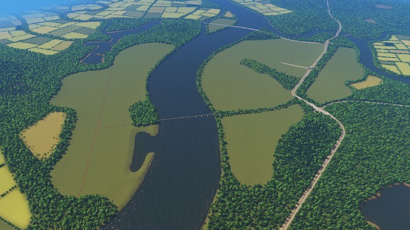 This time not a coastal or an island map, but one with just a massive river in the middle. There is a ton of flat space in the centre, so building an airport should be easy.