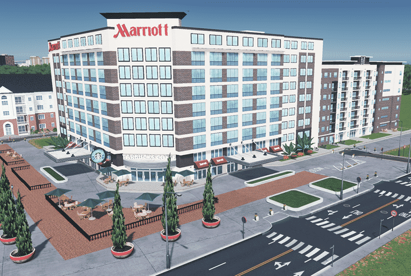 This is a mid-rise moderate modern hotel. It was inspired by newer hotels developed specifically for suburban outdoor malls/lifestyle centers that emulate a more urban ‘main street’ design. Includes Starbucks on the Lobby Level. RICO setting included and functions as a residential building. Lot size is 8×5, and I really hate typing description after I’ve been struggling for hours trying to get it uploaded, so check back later for more info.
