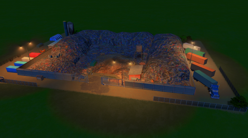 The MRF is a hybrid landfill and recycling center. It has the same capacity as the default landfill, but will divert a portion of the incoming trash to an on-site recycling facility so that the landfill will take much longer to reach capacity. Once it reaches capacity, it will still process a small amount of garbage. It is significantly more expensive to build than the default landfill, but is slightly cheaper to operate since the recyclables offset some of the operating cost.