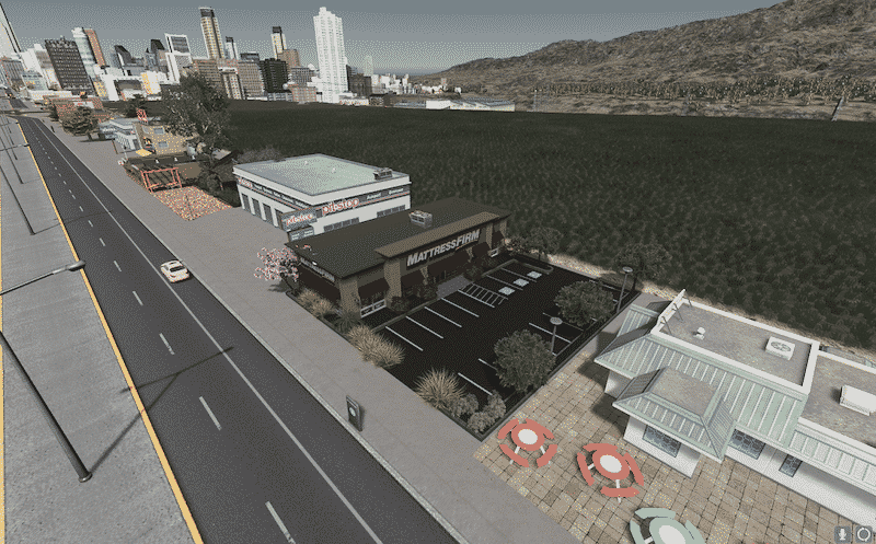I’m testing a new method of building assets with functional parking and a change in the building position for a realistic and aesthetic appeal. The parking allows the neighboring business to have more open air and share the parking space as seen in the pictures.