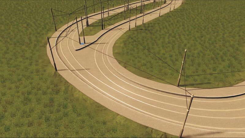 A quick example on how to get smoother tram tracks by changing the Max Turn Angle and Max Build Angle settings.