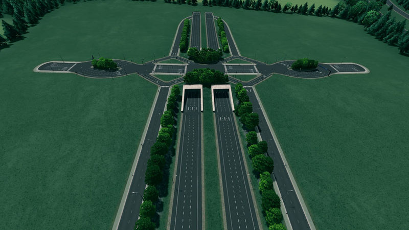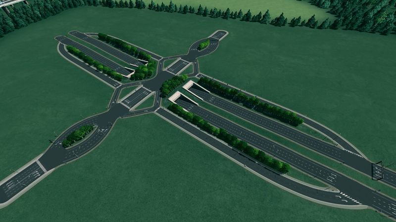 Note: I suggest use Toggle Traffic Lights mod to remove, at least, the first traffic light in this junction (both sides), otherwise you’ll have traffic congestion, for sure.